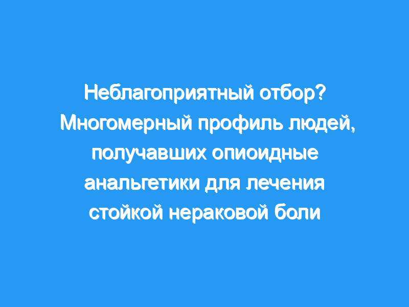 Люди, получавшие опиоидные анальгетики, имели более слабое здоровье, сообщали о более высоком уровне дистресса и более плохом функционировании, чем люди, не получавшие опиоидные анальгетики. Различные профили дозирования были очевидны среди людей, получавших опиоидные анальгетики при постоянной боли, при этом те, кто получал эпизодическое и длительное лечение, получали самые сильные опиоидные анальгетики. Полученные данные подчеркивают широкий спектр факторов, связанных с длительным приемом опиоидных анальгетиков.