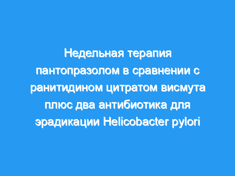 Широко изучалась комбинация омепразола с амоксициллином (Amo) и кларитромицином (CIa) в течение 7 дней. Однако роль других ингибиторов протонной помпы, таких как пантопразол (Pan), в этой терапии недостаточно известна. С другой стороны, цитрат ранитидина висмута (RBC) также, по-видимому, эффективен в сочетании с Amo и CIa. Наша цель состояла в том, чтобы оценить и сравнить эти две новые краткосрочные тройные терапии (Pan+Amo+Cla и RBC+Amo+Cla) для лечения Helicobacter pylori.
