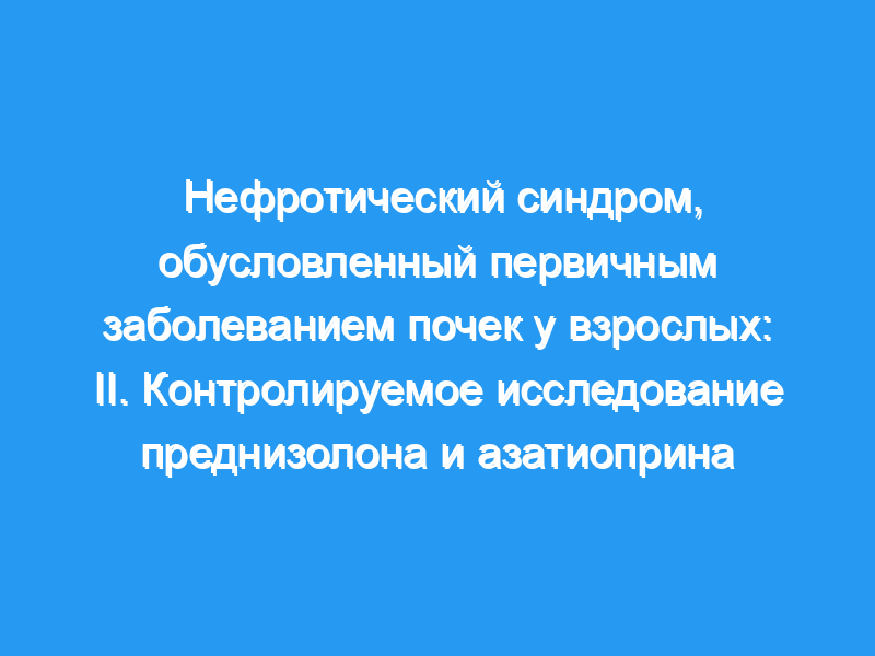 Продление лечения азатиоприном-преднизолоном до одного года было связано с некоторым небольшим улучшением результатов.Эффективность преднизолона при почечном синдроме у взрослых с минимальной почечной гистологической аномалией была подтверждена полной потерей протеинурии в течение восьми недель у шести из восьми пациентов и значительным снижением у остальных пациентов.