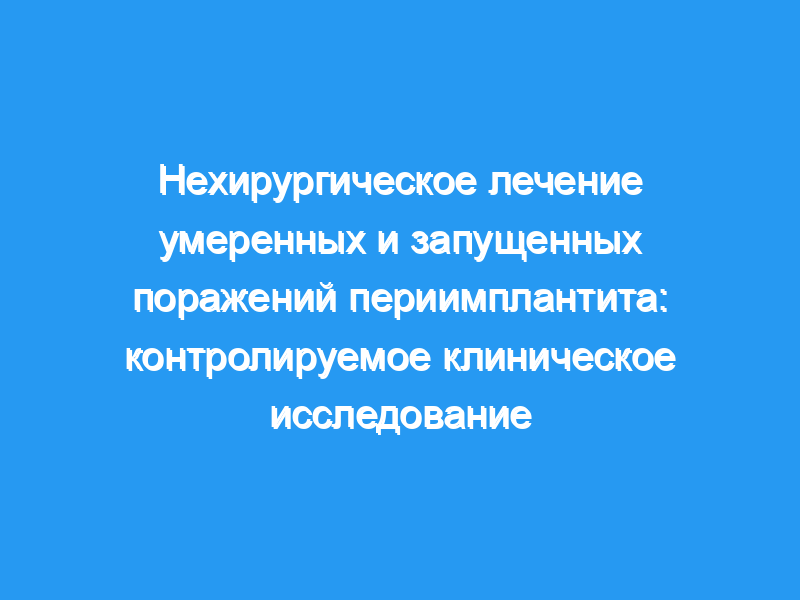 Целью этого контролируемого клинического исследования с параллельным дизайном была оценка эффективности лазера Er:YAG (с добавлением эрбия: иттрия, алюминия и граната) для нехирургического лечения периимплантита.Двадцать пациентов, у каждого из которых был по крайней мере один имплантат с (а) умеренным и (б) прогрессирующим периимплантитом (n=40 имплантатов, IMZ, ITI, Spline Twist, ZL-Duraplant, Camlog), были рандомизированы нехирургическим путем с использованием (1) Er: Устройство YAG-лазера (100 МДж/импульс, 10 Гц) (LAS) или (2) механическая обработка с использованием пластиковых кюреток и антисептическая терапия хлоргексидина диглюконата (0,2%) (C). Следующие клинические параметры были измерены в начале, через 3, 6 и 12 месяцев после лечения: индекс зубного налета, кровоточивость при зондировании (BOP), глубина зондирования, рецессия десны и уровень клинического прикрепления (CAL). Среднее значение ПБ значительно улучшилось в обеих группах через 3, 6 и 12 месяцев (a- поражения: P<,0,001 и b- поражения: P<,0,01 соответственно). Через 3 и 6 месяцев среднее снижение BOP было значительно выше в группе LAS по сравнению с группой C (a- и b- поражения: P<,0,01 и P<,0,05 соответственно). Через 3 и 6 месяцев в обеих группах был выявлен значительный прирост КАЛ при а- и в-поражениях (P<,0,01 соответственно). Однако в обеих группах средний КАЛ при поражениях а и в достоверно не отличался от соответствующих исходных значений через 12 месяцев (P>,0,05 соответственно). Хотя лечение поражений периимплантита с помощью LAS приводило к значительно более высокому снижению BOP, чем C, его эффективность, по-видимому, была ограничена периодом в 6 месяцев, особенно при поражениях типа B.< / p>