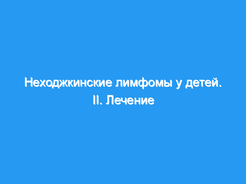 Прогноз неходжкинской лимфомы (НХЛ) у детей неуклонно улучшался в течение последних 2 десятилетий.
