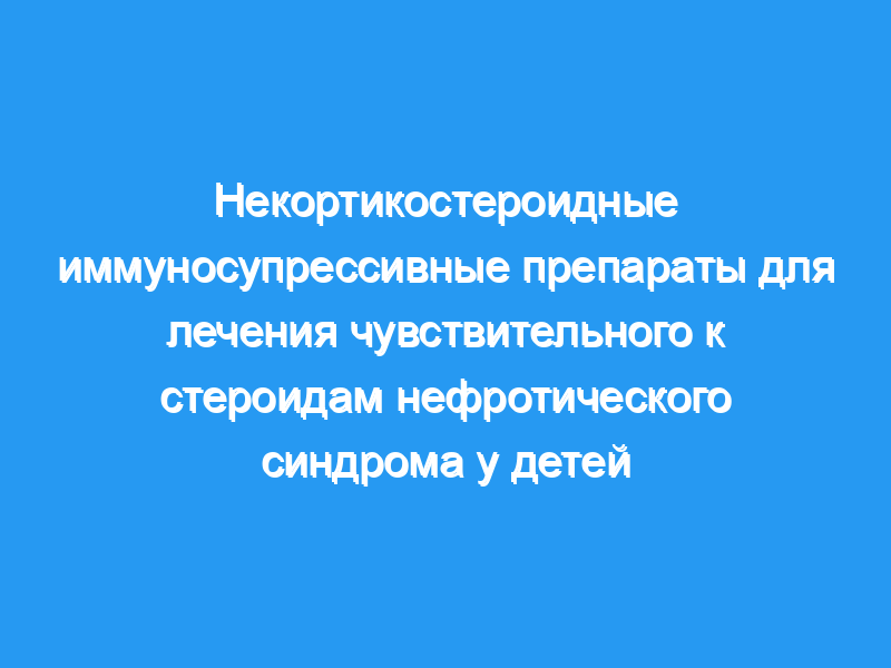 Около 80% детей с чувствительным к стероидам нефротическим синдромом (SSNS) имеют рецидивы. Из этих детей у половины часто случаются рецидивы, и они подвержены риску побочных эффектов кортикостероидов. В то время как некортикостероидные иммуносупрессивные препараты продлевают периоды ремиссии, они имеют значительные потенциальные побочные эффекты. В настоящее время нет единого мнения о наиболее подходящем средстве второй линии у детей, чувствительных к стероидам, но у которых продолжаются рецидивы. Кроме того, эти препараты могут быть использованы вместе с кортикостероидами в начальном эпизоде ССН для продления периода ремиссии. Это четвертое обновление обзора, впервые опубликованного в 2001 году и обновленного в 2005, 2008 и 2013 годах.