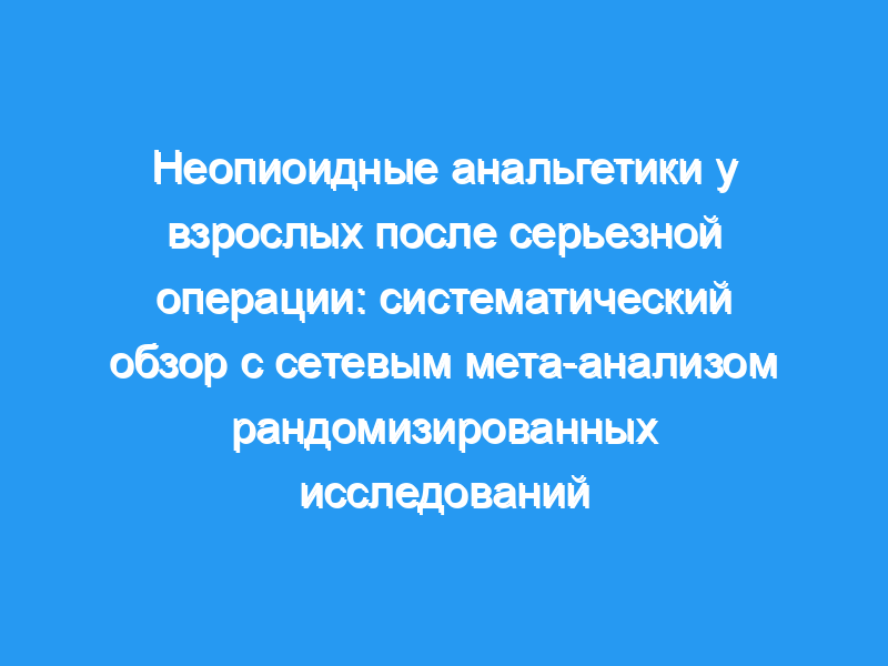 Рандомизированные исследования любого АОМ отдельно или любой комбинации АОМ по сравнению с плацебо или другим АОМ у взрослых, перенесших серьезную операцию и получавших морфиновую анальгезию, контролируемую пациентом, были включены в сетевой мета-анализ. Исходами были потребление морфина, боль, частота тошноты, рвоты через 24 часа и серьезные побочные эффекты.