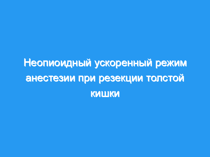 В текущем исследовании использовались методы ускоренной анестезии, сравнивающие результаты мультимодального неопиоидного и другого опиоидного режима лечения по профилям восстановления после операции на толстой кишке со стандартной анестезиологической практикой.