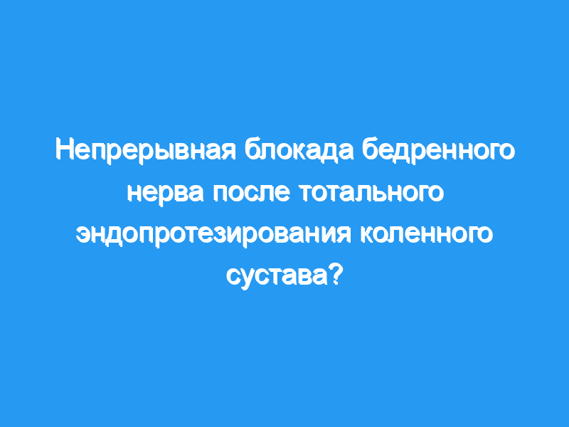 Непрерывная блокада бедренного нерва часто используется в качестве дополнительной терапии после тотального эндопротезирования коленного сустава (ТКА). Тем не менее, до сих пор ведутся споры о его преимуществах.