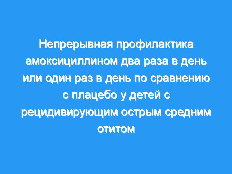 Хотя дозировка один раз в день была эквивалентна дозировке два раза в день для профилактики амоксициллина, не было никакой пользы от профилактики амоксициллином по сравнению с плацебо-контролем в предотвращении новых эпизодов АОМ. Из-за потенциальной возможности чрезмерного применения антибиотиков, способствующих приобретению устойчивых пневмококков, и недостаточной эффективности в этом исследовании следует отказаться от рутинного применения амоксициллина для профилактики.