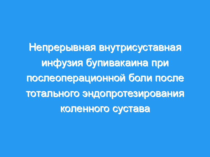 В этом исследовании оценивалась эффективность местной непрерывной инфузии бупивакаина для контроля боли после тотального эндопротезирования коленного сустава.
