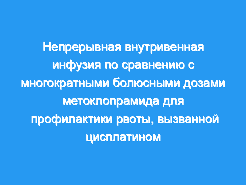 Непрерывная инфузия метоклопрамида сравнивалась с болюсным введением в рандомизированном двойном слепом исследовании у 27 пациентов, получавших цисплатин therap.