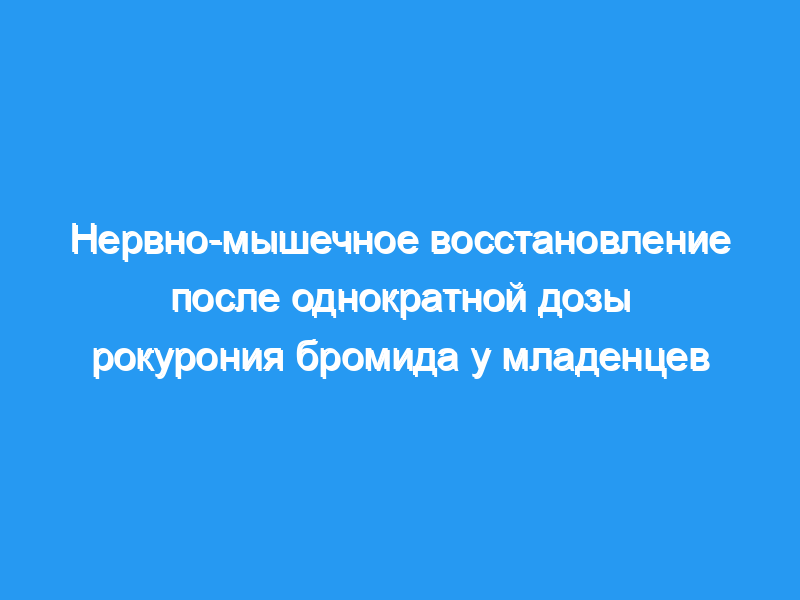 В исследование был включен в общей сложности 61 младенец со средним возрастным диапазоном 67 (2-364) дней. Условия интубации были отличными или хорошими во всех дозах и возрастных группах. T(0) в группе А достигалось в диапазоне 15-30 с, в других — до 60 с. T(1) восстановление (T75) через 0,45 mg.kg (-1) был 56.4 +/- 16 (А), 62.7 +/- 32 (B) и 45,8 +/- 18 (C) мин. Время восстановления для 0,6 mg.kg (-1) были 100.8 +/- 35 (А), 70.6 +/- 19 (B) и 63.4 +/- 21 (C) минимум, соответственно. Коэффициент TOF (0,7) составлял 62.3 +/- 18 (А), 64.1 +/- 27 (B) и 43.7 +/- 12 (C) минимум при использовании 0,45 mg.kg (-1) по сравнению с 94.8 +/- 31 (А), 63.8 +/- 14 (B) и 67.5 +/- 18 (C) минимум с 0,6 mg.kg (-1). Различия в T75 и TOF 0,7 в A и C были значительными (P <,/= 0,05).