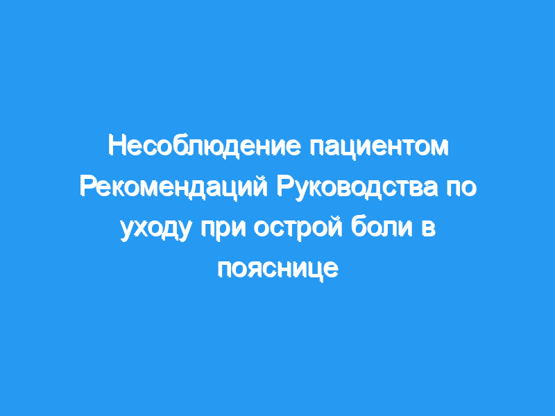 Соблюдение рекомендованного руководством лечения острой боли в пояснице было неудовлетворительным. Большинство участников не соблюдают рекомендованный режим приема парацетамола. Более высокий предполагаемый риск сохранения жалоб, более низкая исходная инвалидность и участники, не претендующие на компенсацию работникам, были независимо связаны с отсутствием приверженности.