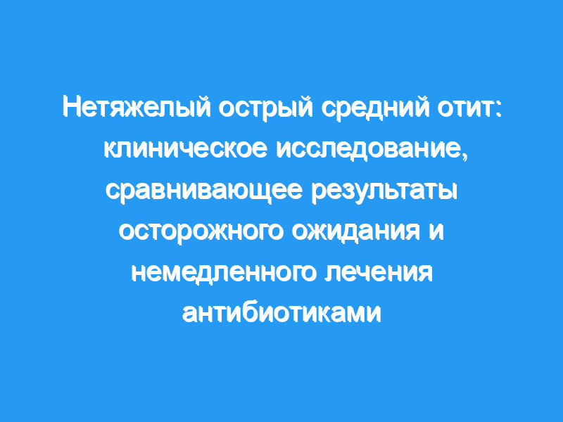 Шестьдесят шесть процентов испытуемых в группе WW завершили исследование без ABX. Удовлетворенность родителей была одинаковой между группами независимо от лечения. По сравнению с WW, немедленное лечение ABX было связано с уменьшением числа неудач лечения и улучшением контроля симптомов, но увеличило количество побочных эффектов, связанных с ABX, и более высокий процент носительства штаммов S. pneumoniae с множественной лекарственной устойчивостью в носоглотке на 12-й день визита. Ключевыми факторами в реализации стратегии WW были (а) метод классификации тяжести AOM, (б) обучение родителей, (в) лечение симптомов AOM, (г) доступ к последующему уходу и (д) использование эффективного режима ABX, когда это необходимо. При соблюдении этих предостережений WW может быть приемлемой альтернативой немедленному ABX для некоторых детей с несерьезным AOM.