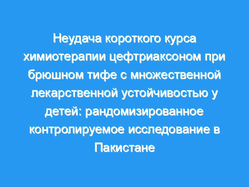 Мы проспективно рандомизировали 57 детей с подтвержденным посевом МЛУ брюшного тифа для лечения внутривенным введением цефтриаксона (CRO) (65 мг/кг массы тела/день) в течение 7 дней (короткий курс, n = 29) или 14 дней (обычный, n = 28). Ответ на терапию, оцениваемый с помощью последовательного мониторинга показателей заболеваемости брюшным тифом и бактериологического клиренса, был сопоставим между группами.