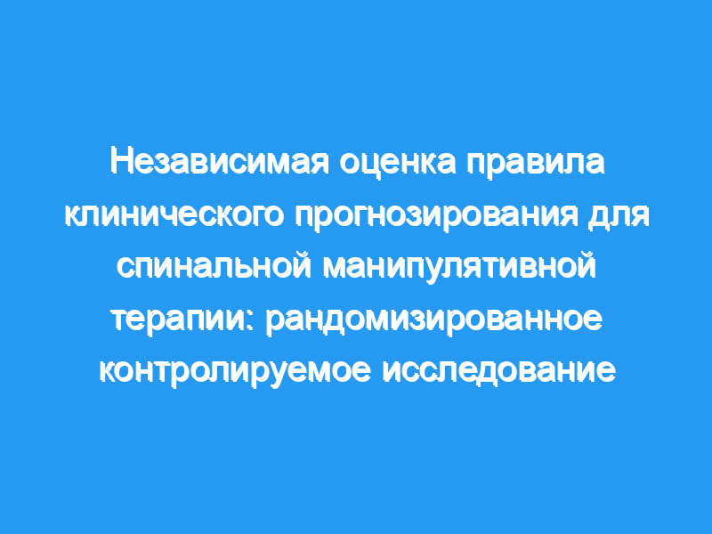 Правило клинического прогнозирования сработало не лучше, чем случайность, при выявлении пациентов с острой неспецифической болью в пояснице, которые с наибольшей вероятностью ответят на спинальную манипулятивную терапию (боль P = 0,805, инвалидность P = 0,600). При 1-недельном наблюдении средняя разница в эффекте спинальной манипулятивной терапии по сравнению с плацебо у пациентов, у которых правило было положительным, а не отрицательным, была на 0,3 балла меньше по 10-балльной шкале боли (95% ДИ -0,8 — 1,4). Правило клинического прогнозирования, предложенное Чайлдсом и др.
