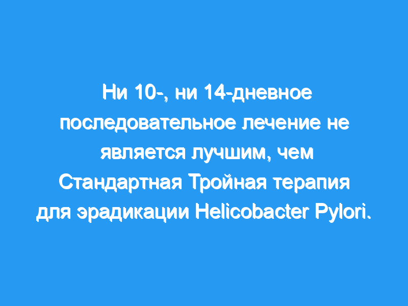 Схемы лечения последовательной терапией не лучше стандартной тройной терапии для эрадикации инфекции H. pylori, независимо от продолжительности лечения.