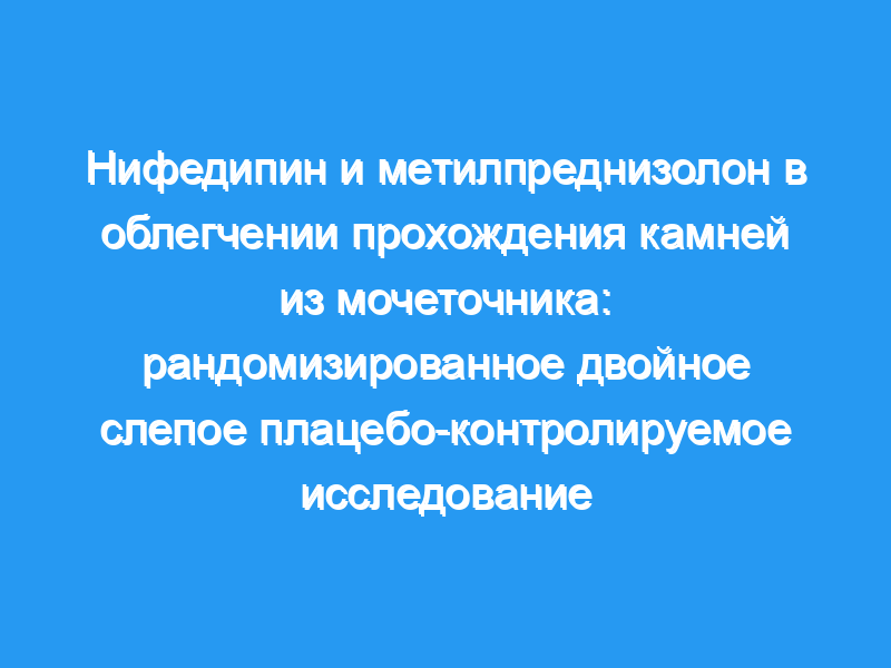 Чтобы проверить эффективность антагониста кальция (нифедипина) в сочетании с кортикостероидом (метилпреднизолоном) в облегчении прохождения камней из мочеточника, мы обследовали 86 пациентов с односторонним рентгеноконтрастным камнем мочеточника размером не более 15 м.