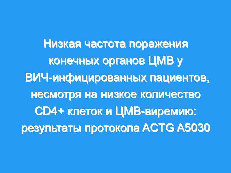Описать частоту поражения конечных органов цитомегаловирусом (ЦМВ) у больных СПИДом с низким количеством CD4+ клеток, несмотря на ВААРТ, которые были включены в рандомизированное плацебо-контролируемое исследование превентивного валганцикловира (VGCV) для предотвращения ЦМВ-инфекции у пациентов с ЦМВ-виремией.