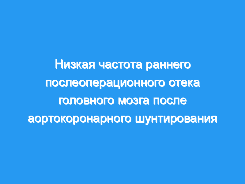 Соответствующих степеней раннего послеоперационного отека головного мозга не наблюдалось. Результаты настоящего исследования сильно контрастируют с более ранними исследованиями, показывающими отек головного мозга на ранних стадиях после АКШ у большинства пациентов.