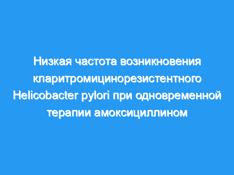 Применение амоксициллина в качестве сопутствующей терапии приводит к низкой частоте развития резистентности к кларитромицину у пациентов с персистирующей инфекцией H. pylori после лечения по схеме, содержащей кларитромицин.
