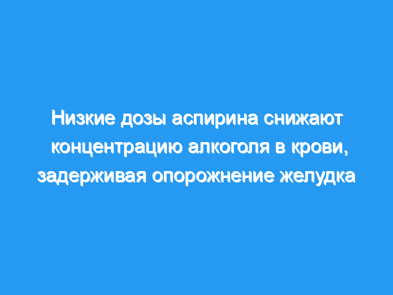 Прием низких доз АСК (75 мг в день) имеет тенденцию задерживать всасывание умеренной дозы этанола, что приводит к снижению пиковых концентраций этанола в крови и уменьшению площадей под кривыми концентрация-время. Основной механизм, по-видимому, заключается в задержке опорожнения желудка, на что указывает тест на всасывание парацетамола.