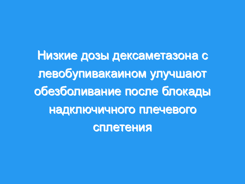 Мы провели однократную надключичную блокаду под ультразвуковым контролем и исследовали обезболивающий эффект дексаметазона, добавленного к левобупивакаину. Целью этого исследования было определить, увеличит ли добавление низких доз дексаметазона к левобупивакаину продолжительность обезболивания в достаточной степени, чтобы избежать дополнительного внутривенного применения анальгетика в течение первых 24 часов после операции.