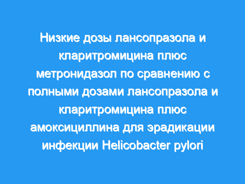 В этом открытом рандомизированном контролируемом исследовании эрадикация H. pylori низкими дозами лансопразола и кларитромицина плюс метронидазол была выше при значительно меньшем количестве побочных эффектов. чем при приеме полной дозы лансопразола и кларитромицина плюс амоксициллина. Это открытие может быть связано с более сильным синергизмом кларитромицина и метронидазола, даже в более низких дозах, чем кларитромицина и амоксициллина. Учитывая также более низкую стоимость, LCM следует предпочесть LCA при ликвидации H. pylori.