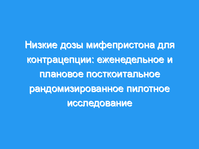 В этом рандомизированном пилотном исследовании мы сравнили эффективность контрацепции, безопасность и профили побочных эффектов еженедельных и запланированных посткоитальных схем приема низких доз мифепристона.