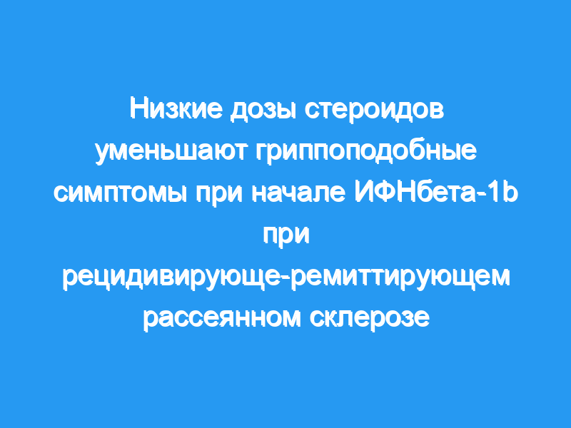 Чтобы определить, уменьшает ли низкие дозы преднизолона гриппоподобные симптомы при начале приема интерферона бета 1-b (IFNbeta-1b), мы изучили 71 пациента с клинически определенным, рецидивирующе-ремиттирующим рассеянным склерозом, которым начали принимать IFNbeta-1.
