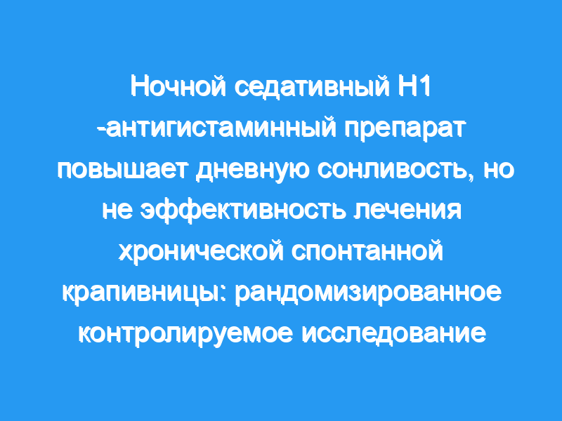 Многие врачи считают, что наиболее эффективным способом лечения хронической крапивницы является прием неседативных Н1-антигистаминных препаратов второго поколения утром и успокаивающих Н1-антигистаминных препаратов первого поколения, обычно гидроксизина, на ночь для улучшения сна. Но обосновано ли это убеждение?