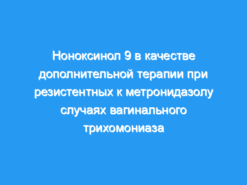 Настоящее исследование было проведено на 30 пациентках с вагинальным трихомонозом, устойчивым к метронидазолу, с целью изучения эффективности ноноксинола 9 (N-9), негормонального контрацептива со спермицидным эффектом, в качестве дополнительной терапии к метронидазолу (MNZ). Исследуемая популяция была случайным образом разделена на 3 группы в соответствии со схемой лечения: G.I: пациенты получали высокие дозы МНЗ (2 г ежедневно в течение 7 дней) n = 10, G. II: пациенты получали (100 мг N-9 вагинальных суппозиториев ежедневно в течение 7 дней) n = 10, G. III: пациенты получали обычная доза МНЗ (1 г ежедневно в течение 7 дней) плюс (суппозиторий N-9 по 100 мг в течение 7 дней) n = 10. Клиническая и паразитологическая оценка излечения проводилась при повторных визитах через 1, 2, 4 и 6 недель после лечения.
