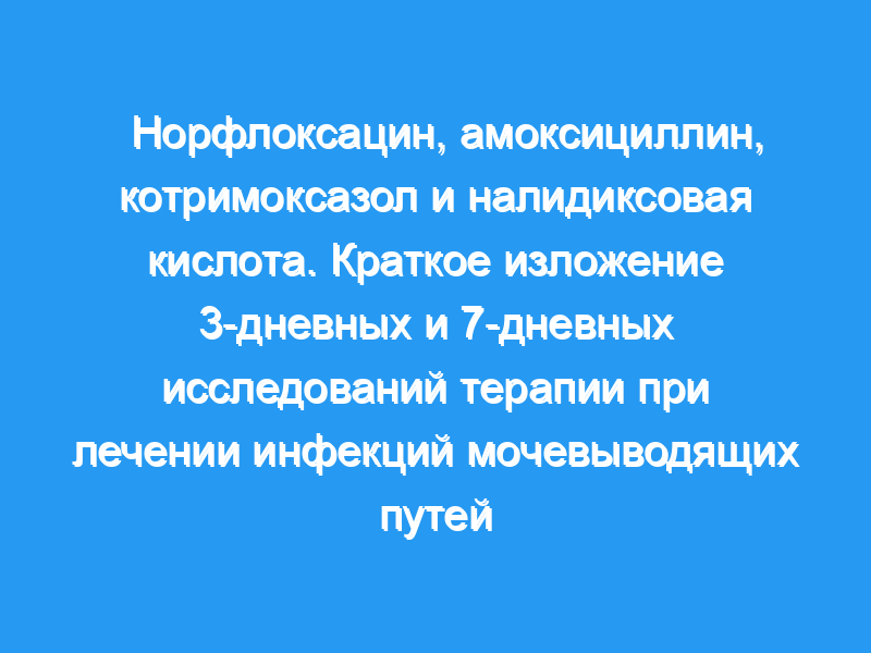 Норфлоксацин был столь же эффективен в устранении бактериурии, как амоксициллин, котримоксазол или цитратная налидиксовая кислота.