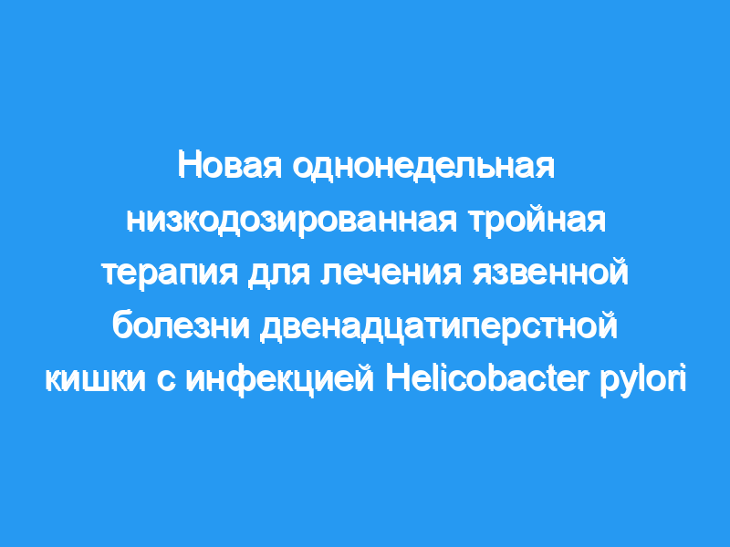 Однонедельная тройная терапия омепразолом, кларитромицином и метронидазолом высокоэффективна для эрадикации H. pylori. Терапевтический режим продолжительностью в одну неделю с более низкой стоимостью, хорошим соблюдением и умеренными побочными эффектами может стать хорошим выбором для лечения язвенной болезни двенадцатиперстной кишки, связанной с инфекцией H. pylori, в клинической практике.