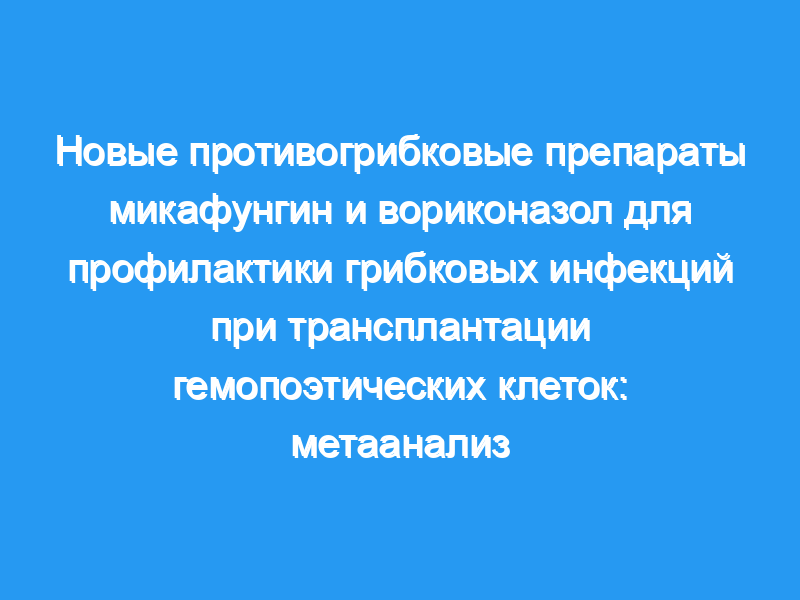 Новые противогрибковые средства предоставляют дополнительные возможности для эффективной профилактики грибковых инфекций во время трансплантации стволовых клеток пациентам с гематологическими злокачественными новообразованиями, однако эффективность этих противогрибковых профилактических препаратов еще не установлена. Это исследование было проведено с целью сравнения новых противогрибковых препаратов микафунгина и вориконазола с точки зрения профилактического воздействия на клинические исходы.