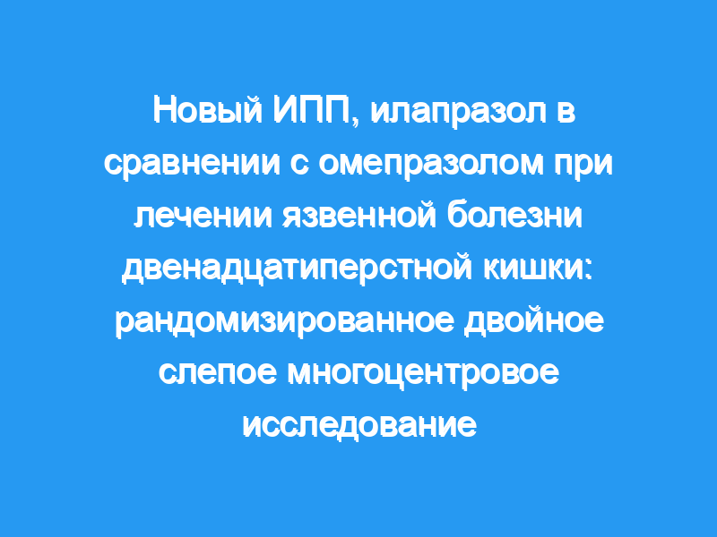 ИПП используются в терапевтических целях уже много лет и показали большую эффективность в ускорении заживления язв. В настоящее время исследования сосредоточены на более мощных ИЦП. Некоторые доклинические исследования показали, что илапразол может быть такой новой заменой. Исследование: 235 пациентов с по крайней мере 1 эндоскопически диагностированной активной язвой двенадцатиперстной кишки были включены в рандомизированное исследование. Пациенты были рандомизированы на 4 группы (илапразол в дозе 5, 10 и 20 мг/сут, омепразол в дозе 20 мг/сут в качестве положительного контроля) и получали лечение в течение 4 недель. Сорок пациентов принимали непрерывные 24-часовые измерения рН после пятой дозы. Первичной конечной точкой была скорость заживления язвы на 4-й неделе.