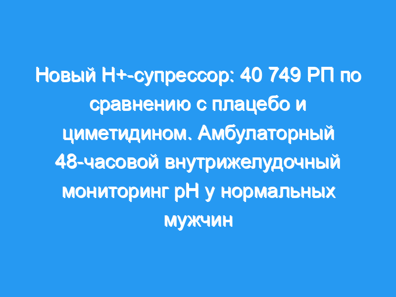 RP 40 749, новый ингибитор секреции желудочной кислоты, действующий в паритальной клетке, значительно повышал средний 24-часовой внутрижелудочный рН не только во время приема лекарств, но и во время день после его отмены.