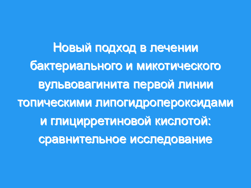 ЦЕЛЬ ИССЛЕДОВАНИЙ: Целью этого рандомизированного контролируемого исследования была оценка эффективности и переносимости новой комбинации липогидропероксидов и глицирретиновой кислоты при местном лечении бактериального и микотического вульвовагинита.