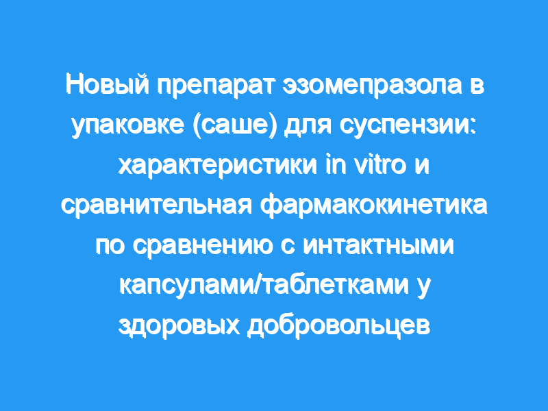 В этой статье сообщается о характеристиках нового препарата эзомепразола in vitro, включая стабильность в суспензии и пригодность для введения перорально или через энтеральные трубки. В нем также описывается фармакокинетический профиль 40-мговой упаковки эзомепразола по сравнению с существующими твердыми лекарственными формами (капсулы и таблетки) в клиническом исследовании биоэквивалентности.