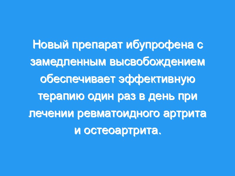 В этом исследовании было показано, что ибупрофен с замедленным высвобождением является более эффективной альтернативой традиционной терапии ибупрофеном для лечения артритных заболеваний в общей практике, предлагая удобство дозирования один раз в день и связанную с этим потенциальную пользу от улучшения состояния пациента. соответствие требованиям.