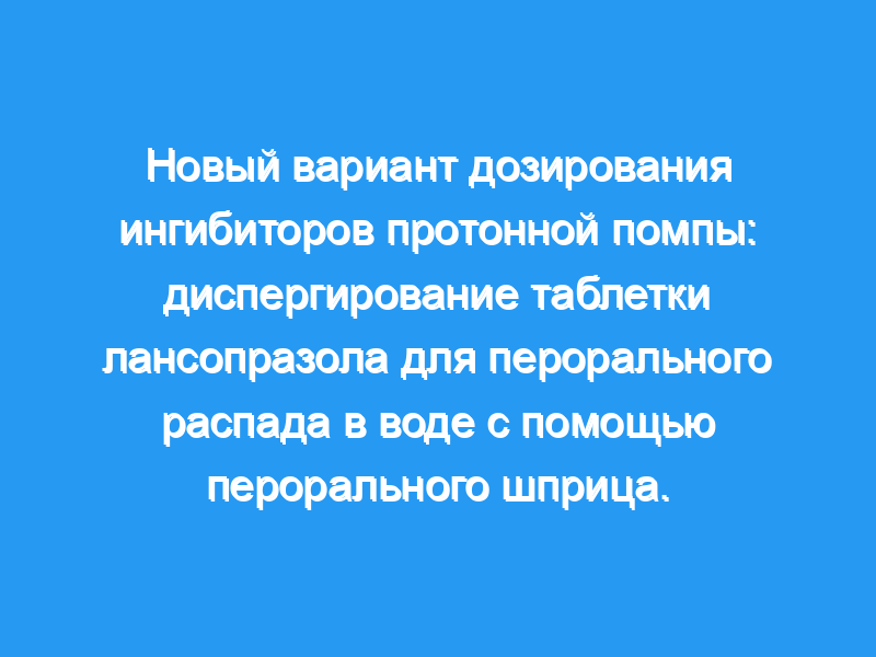 Диспергирование таблетка лансопразола, растворимая в воде и вводимая перорально с помощью шприца в дозе 15 мг, является биоэквивалентной таблетке лансопразола, растворимой в воде, в отношении площади лансопразола при концентрации в плазме и C (макс.). Этот способ дозирования обеспечивает дополнительный удобный вариант дозирования лансопразола.
