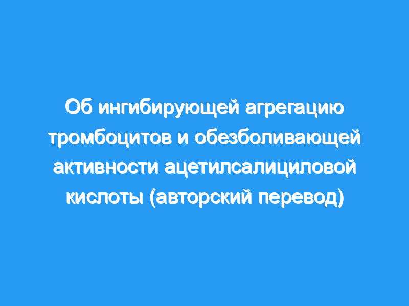 Поэтому требуется дифференцированное применение препаратов АСК в качестве ингибиторов агрегации тромбоцитов.