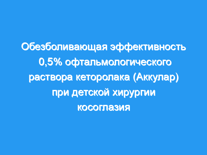 Это проспективное двойное слепое исследование было разработано для оценки обезболивающей эффективности 0,5% офтальмологического раствора кеторолака по сравнению с плацебо у 30 здоровых детей, перенесших рецессию экстраокулярных мышц для коррекции косоглазия.