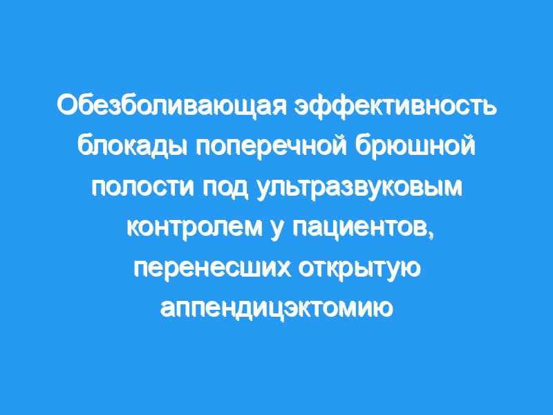 Ультразвуковая блокада TAP имеет значительные перспективы в качестве части сбалансированного послеоперационного обезболивающего режима для пациентов, перенесших открытую аппендицэктомию.