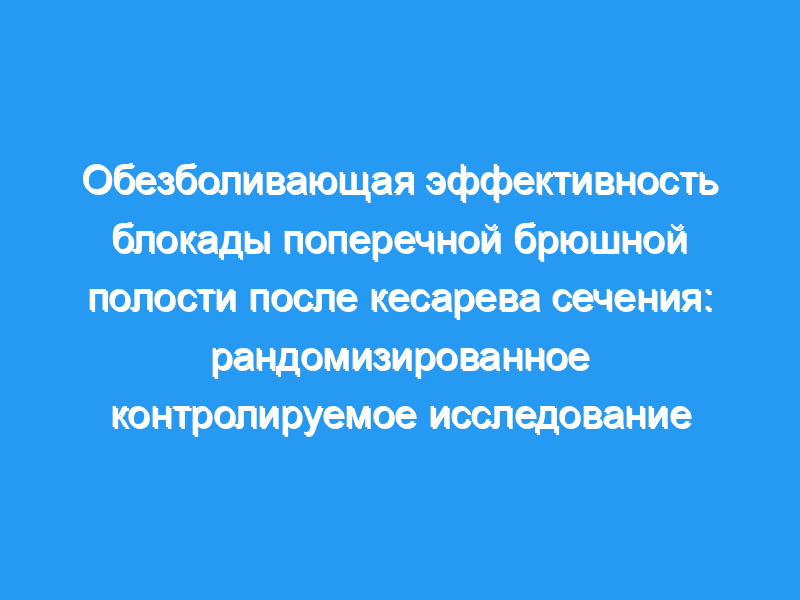 Блок поперечной плоскости живота (TAP) является эффективным методом обеспечения послеоперационной анальгезии у пациентов, перенесших разрезы брюшной стенки по средней линии. Мы оценили его обезболивающую эффективность в течение первых 48 послеоперационных часов после кесарева сечения, выполненного через разрез Пфанненштейна, в рандомизированном контролируемом двойном слепом клиническом исследовании.