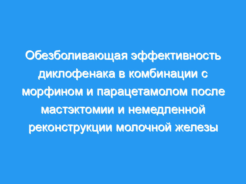Лечение рака молочной железы с помощью мастэктомии и немедленной реконструкции молочной железы (IBR) связано с сильной болью в первичном послеоперационном периоде. Настоящее проспективное, плацебо-контролируемое и двойное слепое исследование было направлено на оценку обезболивающей эффективности диклофенака, нестероидного противовоспалительного препарата (НПВП), в комбинации с парацетамолом и опиоидами. Это было сделано путем 64-часовой оценки интенсивности послеоперационной боли, потребления опиоидов, кровопотери, тошноты и усталости.