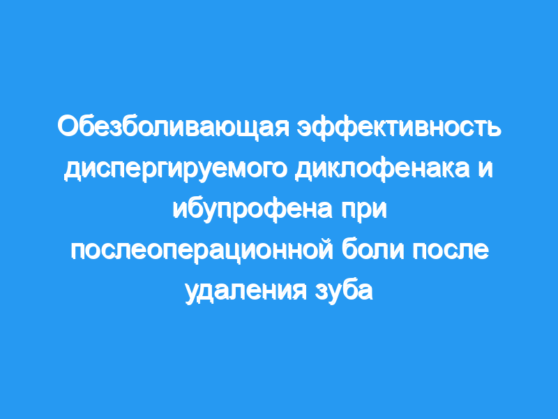 Мы сравнили однократные пероральные дозы диспергируемого диклофенака для питья (50 мг) с ибупрофеном (400 мг) и плацебо в рандомизированном двойном слепом исследовании с участием 127 взрослых, жалующихся на по крайней мере умеренно сильную боль после удаления пораженной третьей моляры.