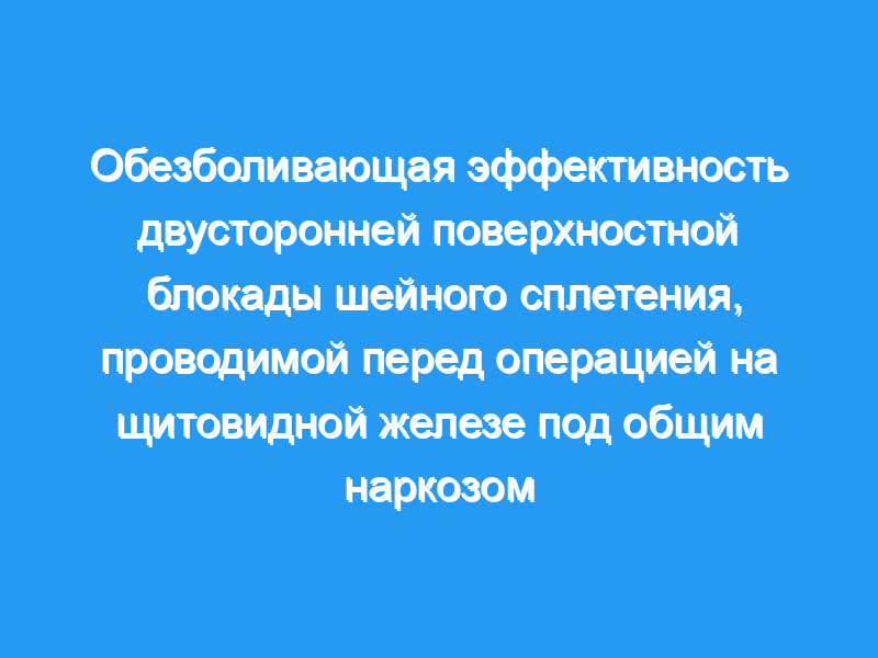 BSCPB с ропивакаином и клонидином улучшили интраоперационную анальгезию. BSCPB с ропивакаином или ропивацианом и клонидином был эффективен в снижении потребности в анальгетиках после операции на щитовидной железе.