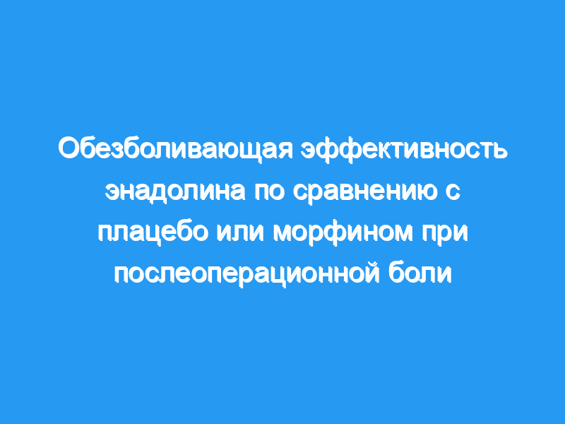 был проведен.Энадолин в дозе 25 мкг давал такое же обезболивающее, как и морфин, хотя и более короткое по продолжительности, и лучше, чем энадолин в дозе 15 мкг или плацебо.