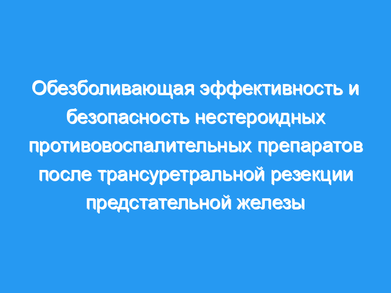 Целью данного исследования была оценка обезболивающей эффективности и безопасности нестероидных противовоспалительных препаратов (НПВП), вводимых в виде внутримышечного диклофенака, по сравнению с внутривенным введением парацетамола после трансуретральной резекции предстательной железы (ТУРП).