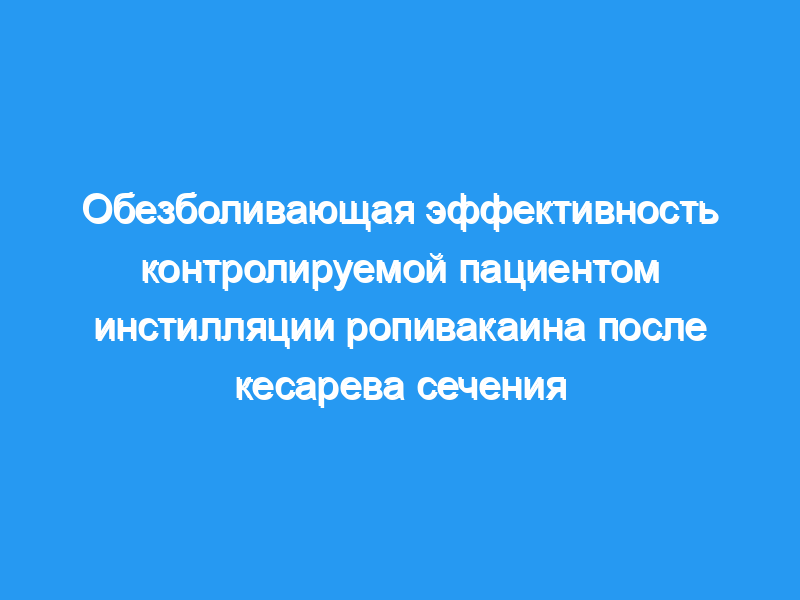 Закапывание ропивакаина в рану с помощью эластометрической помпы — это простой метод, который обеспечивает безопасную и эффективную анальгезию после кесарева сечения.