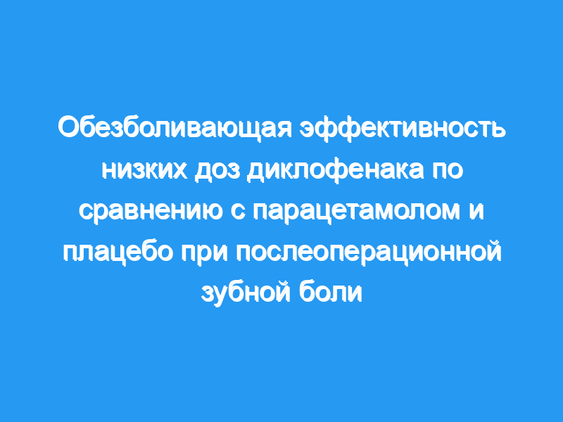 Начальная двойная доза диклофенака-К (2 х 12,5 мг) или парацетамола (2 х 500 мг) адекватно снимала наиболее сильную послеоперационную боль, а гибкий режим приема нескольких доз (1 или 2 таблетки) поддерживал адекватное облегчение боли после операции. Большинству пациентов после начальной дозы в 2 таблетки требовалась только 1 таблетка.