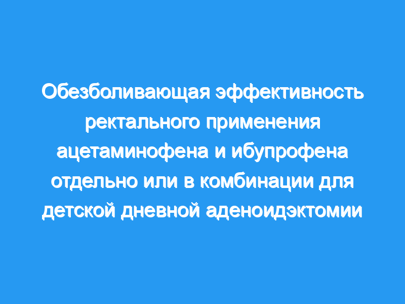 Ацетаминофен и нестероидные противовоспалительные препараты имеют разные механизмы действия. Мы исследовали, обеспечит ли комбинация ректального ацетаминофена с ибупрофеном лучшую послеоперационную анальгезию по сравнению с любым из этих препаратов отдельно после аденоидэктомии у детей.